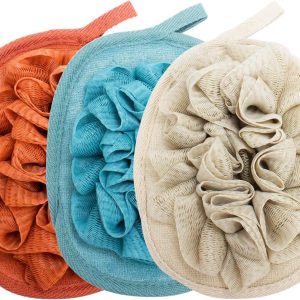 3 Pack Body Sponge Brushes Pouf Mesh Brush Shower Glove with Flower Bath Ball