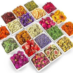 • 21 VARIETIES DRIED FLOWERS SET: Each dried flower has its special function and shape, this set will meet your different needs. You will get 18 kind natural dried flowers: Lavender, Lily, Jasmine, Red Gomphrena Globosa, Rose Petals, Don’t Forget Me Flower, Peony, Helichrysum, Bracteatum, Purple Gomphrena, Money plant flowers, Lotus plumule, Calendula, Fig Flower, Jirechrysanthemum, Lemon Slices, Dianthus Leaf, Silktree Albizziae Flower, Kunlun Snow Chrysanthemum, Roselle, Stevia Leaf !