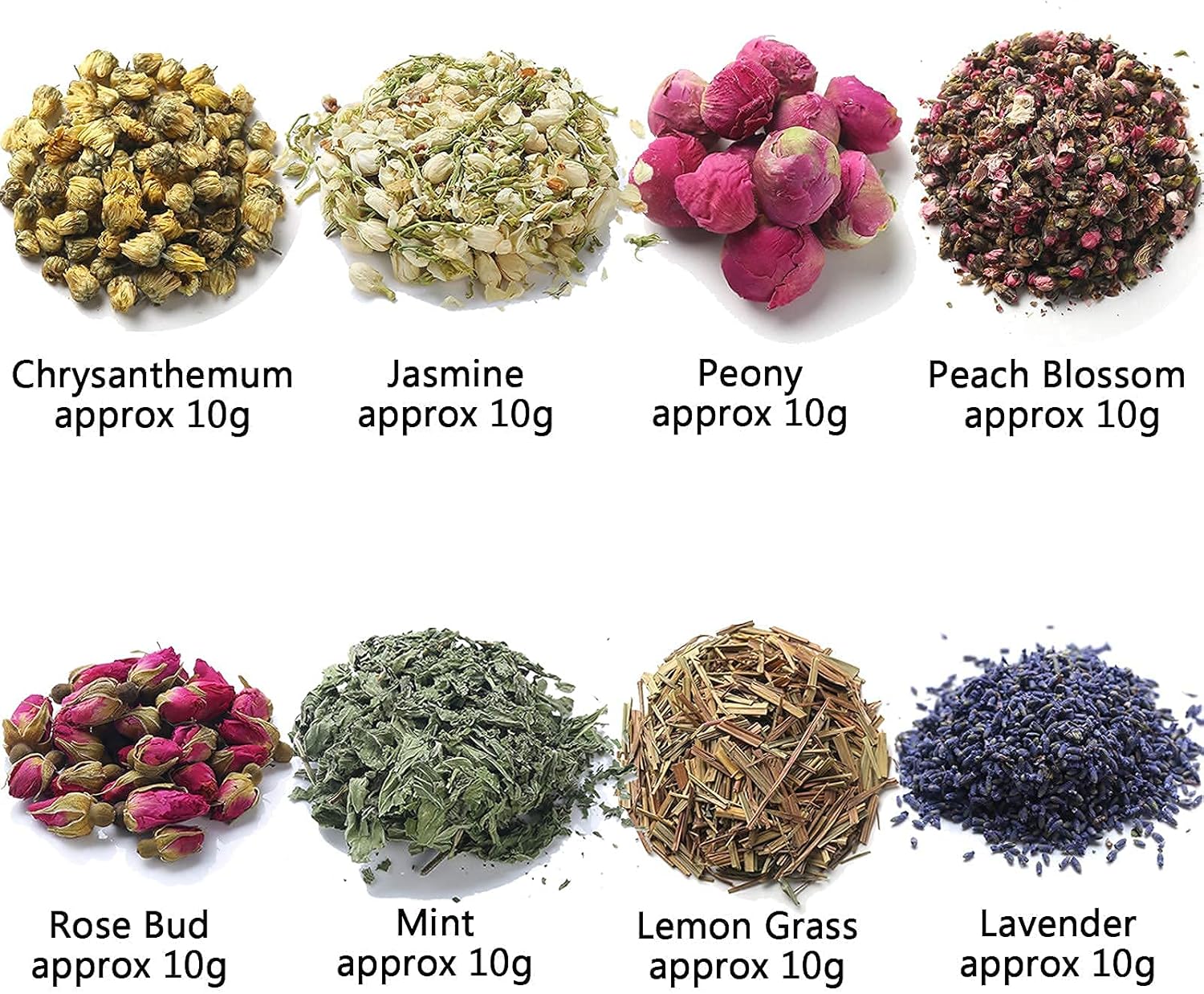 • WIDE FLOWERS VARIETY:8 types of flowers dried waiting to be discovered and used at it’s best; 8 types of scents to delight your senses, with huge impact on your body and mental health.